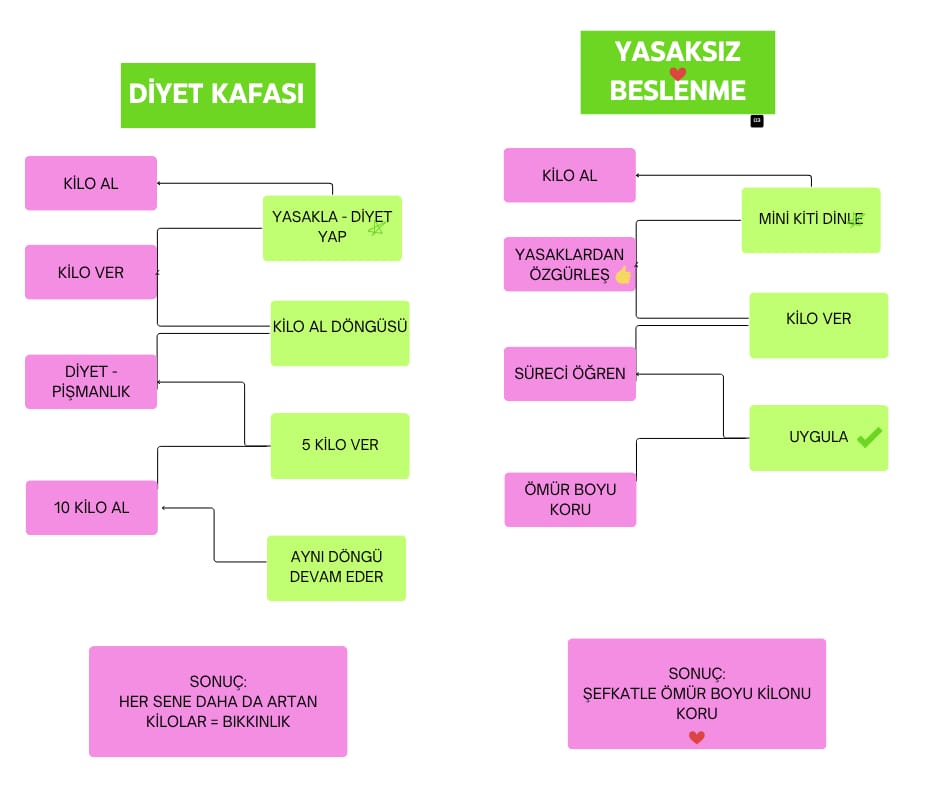 3️⃣ Şefkatli beslenmeye geçiş yap, kilo verirken kendini cezalandırmaktan vazgeç!